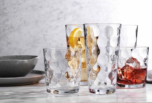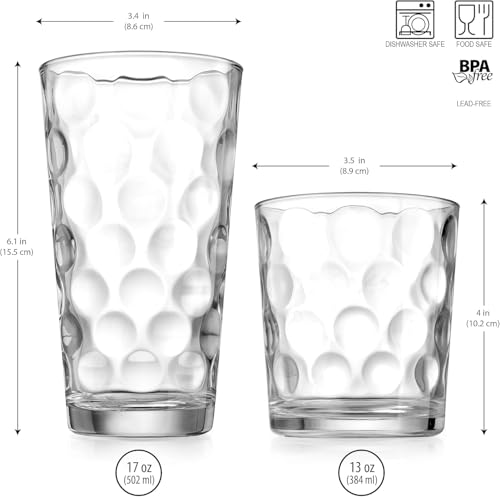 Versatile Set: This 12-piece drinkware set includes 6 tall highball glasses (17 oz capacity) and 6 rocks glasses (13 oz capacity) for all your beverage needs.