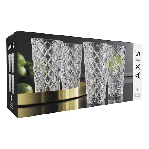 Glaver’s Drinking Glasses Set of 4. Tall Highball Glasses. Textured Drinking Glasses. 14oz. Diamond Cut Glass Cups. Elegant Drinking Glassware. Kitchen Glasses. Water, Iced Tea, Juice, Cocktail.