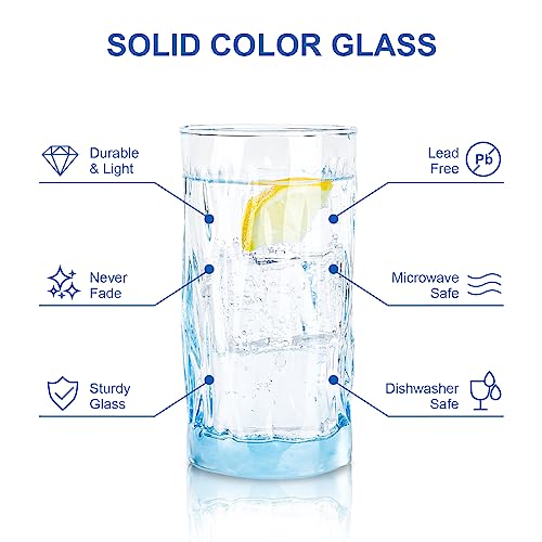 Specification: REATIVELAND Solid Color Drinking Glasses Set of 6, 13.5 OZ Wind-blown Ripples Glass Tumbler Glassware for Water, Juice, Different Options for Home, Restaurant, Hotel, Bar, Blue