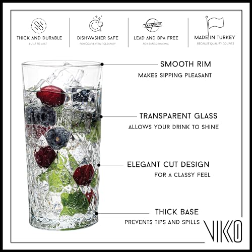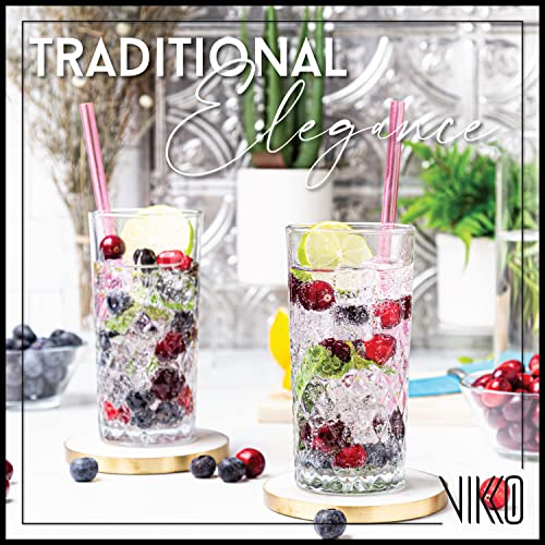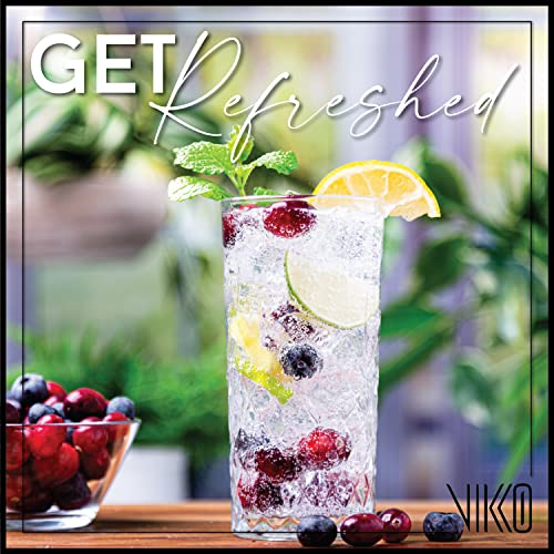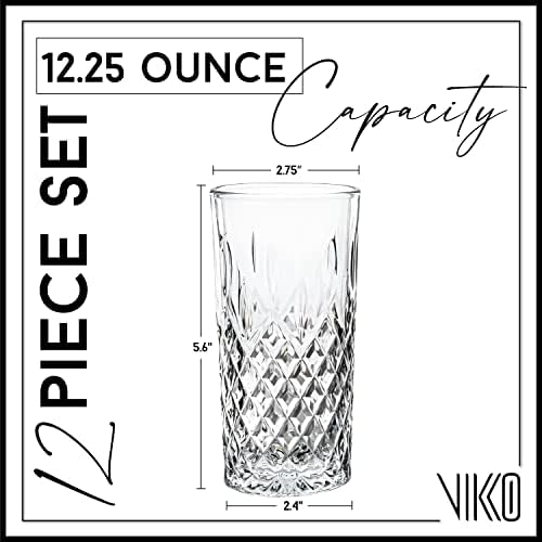 Specification: Vikko Drinking Glass, Set of 12 Crystal Style Tall Beverage Glasses, 12.25 Ounce Old Fashioned Highball Glasses, Dishwasher Safe Textured Collins Glass