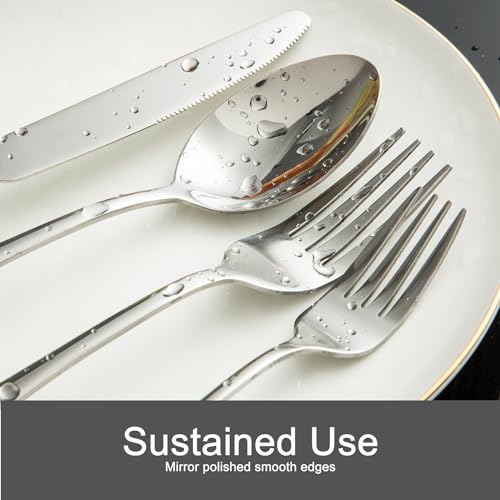 【COMFORTABLE DESIGN】: This flatware set has a classic silhouette with clean lines and polish-finish surface , a good choice to go with your existing tableware. The smooth edge of the handle is pleasure to hold, appropriate weight and perfect balance are added to ensure maximum comfort during use.