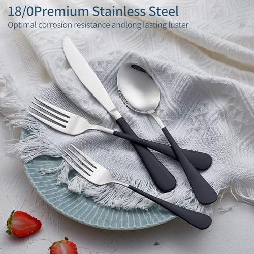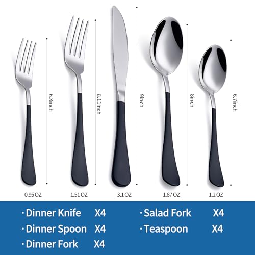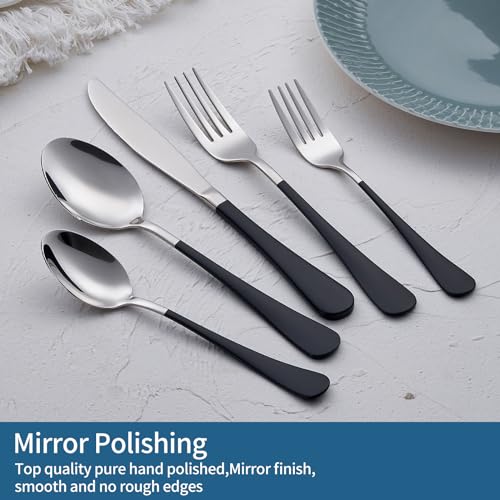 Specification: Black Silverware Set 20 Piece 18/0 Stainless Steel Flatware Black Handle Cutlery Set Service for 4 Black Forks Spoons and Knives Set unique silverware set Mirror Finish Dishwasher Safe