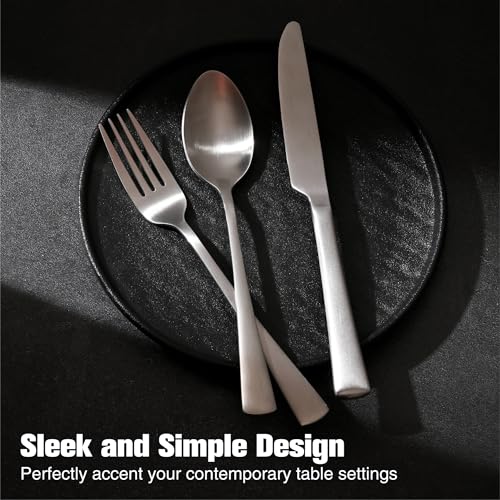 Specification: KINGSTONE Silverware Set for 8, 40-Piece 18/10 Stainless Steel Flatware Set,Forged Cutlery Set Matte Satin Finish, Dishwasher Safe