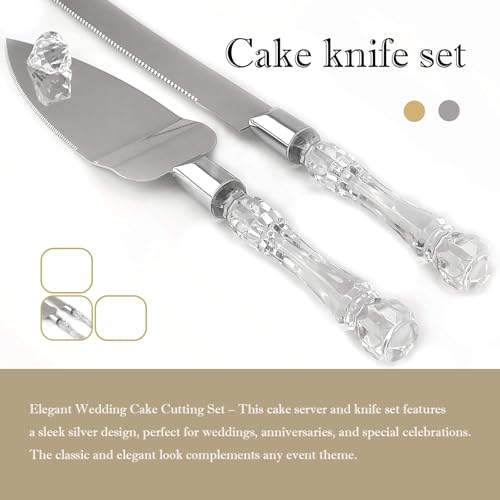 Adorox Cake Knife and Server Set Acrylic Stainless Steel Faux Crystal Handle Holiday Thanksgiving Christmas
