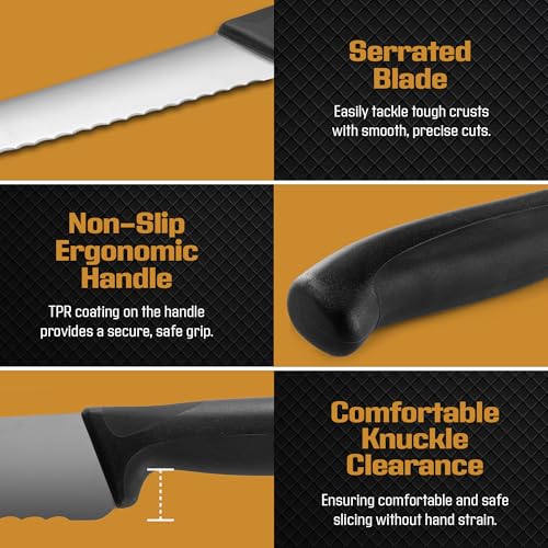 RAZOR-SHARP BREAD KNIFE – Slice through baguettes, challah, and sourdough effortlessly. This versatile bread knife is a must-have tool, with a serrated bread knife blade for smooth cuts without crushing. Use it as a dough cutter or slicing guide for perfect results. Ideal for anyone needing sharp bread knives or even a reliable bread knofe
