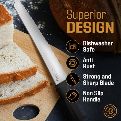 SAFE, SMOOTH & PRECISE CUTTING – The scalloped serrated edge prevents slipping, giving you clean, even slices. The full-tang construction adds strength and balance, while the offset handle design keeps your knuckles clear for safe and efficient cutting. Ideal for slicing thick artisan loaves, sandwich bread, and even frozen cakes