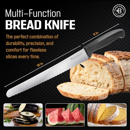Specification: Bambüsi Bread Knife for Homemade Bread Sourdough – Long 10″ Serrated Stainless Steel Cutter with 6″ Non-Slip Handle – Sourdough Cutter for Slicing Artisan Loaves, Cake, Pastries, and Fruits