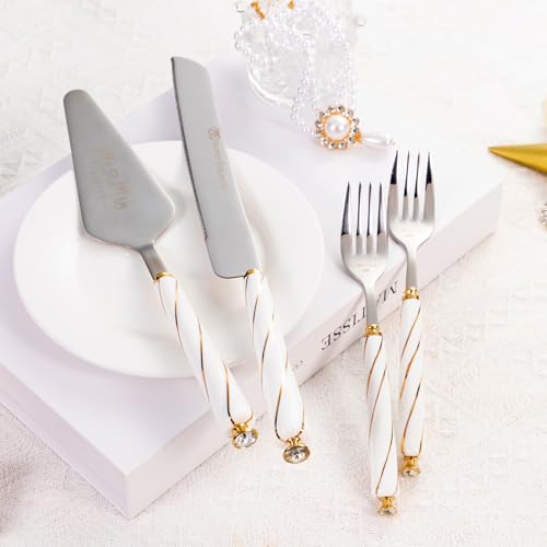 Ceramic Handle With Rhinestones: Made of food-grade stainless steel, this wedding cake knife and server set features an exquisite design with an ergonomic ceramic handle adorned with rhinestones. It ensures that you can treasure this cake pie service set as a keepsake.