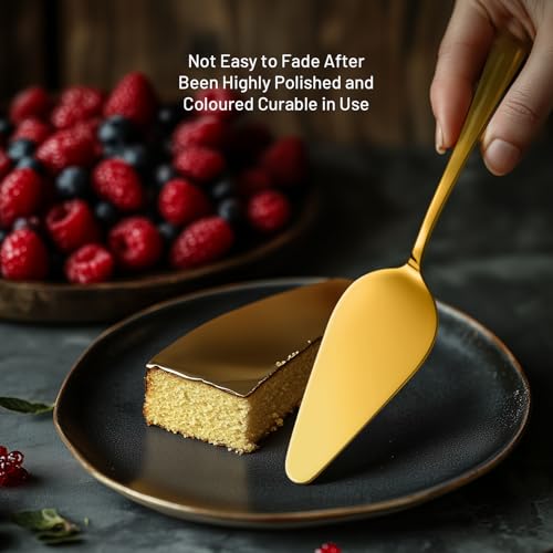 【GOOD PRACTICALITY】Cutting cake is easier with the extended cake knife, and you can serve cake and pie easily with the widened and larger serving panel which has enough space. The handle is also very comfortable to use with the ergonomic design.