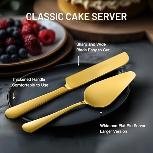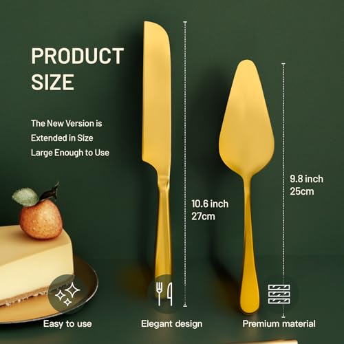 Wedding Cake Knife and Server Set, Premium Cake Cutting Set with 9.8″ Large Pie Server, Exquisite and Portable Cake Cutter as Sweet Gift for Birthday Anniversary and Christmas (Gold)