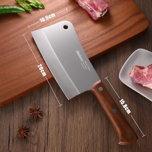 Heavy Duty Cleaver Knife 8 Inch Professional Butcher Knife Bone Chopper Chopping Bones Weight Heft High Carbon Stainless Steel Full Tang Ergonomic Wooden Handle
