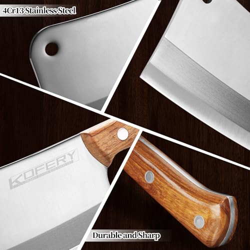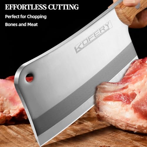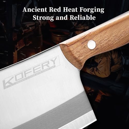 KOFERY 7.5-inch Hand Forged Heavy-Duty Meat Cleaver – High Carbon Stainless Steel, Bone Cutting Knife, Multipurpose Chef’s Chopping Knife