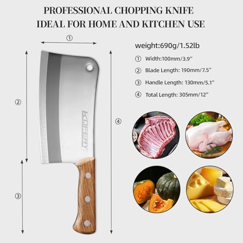 Specification: KOFERY 7.5-inch Hand Forged Heavy-Duty Meat Cleaver – High Carbon Stainless Steel, Bone Cutting Knife, Multipurpose Chef’s Chopping Knife