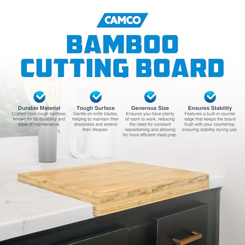 Specification: Camco Bamboo Cutting Board Durable, 18 x 14 x 3 Inches, Easy to Clean Board with Built In Juice Groove, Counter Edge for Stability, Ideal for Knives