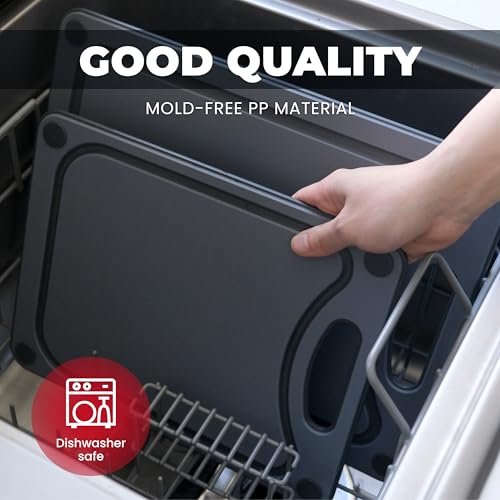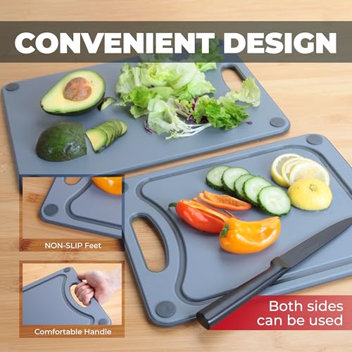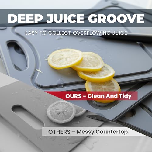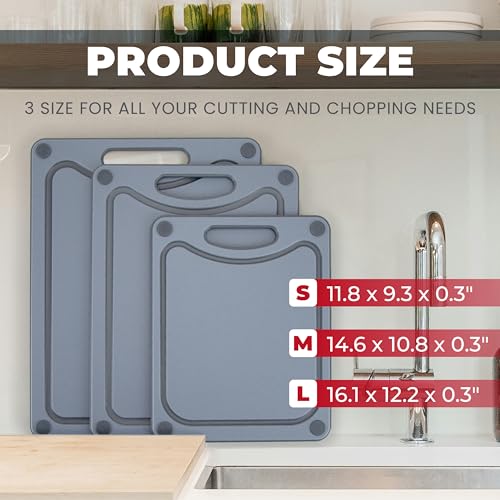 Specification: CARTMAN Kitchen Cutting Board Set of 3, Oversized 100% BPA Free Reversible Cutting Board, Juice Grooves Cutting Board, Dishwasher Safe, Easy Grip Handle Border, Food Chopping Boards, Gray