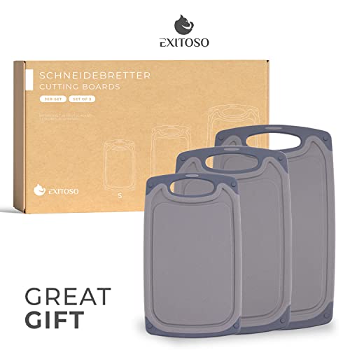 Exitoso Cutting Board Set of 3 – BPA Free Cutting Boards for Kitchen Dishwasher Safe – Non Slip Plastic Cutting Board with Juice Groove – Large and Small Plastic Cutting Boards For Kitchen Essentials