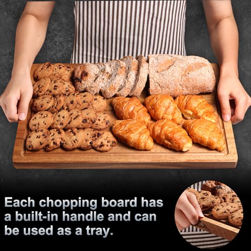 MULTIFUNCTIONAL CUTTING BOARD SET – This cutting board set comes in 3 sizes, 17×12 inches for cutting meat or steak, 12×10 inches for cutting vegetables, 12×7 inches for cutting fruits, breads and more. Three sizes of wooden cutting boards for your regular cutting needs. They can also be used as trays for entertaining guests.