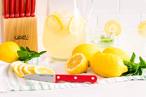 Specification: Ginsu Kiso 14-Piece Red Knife Set with Black Block – Dishwasher Safe and Always Sharp
