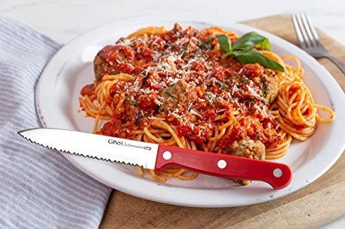 Ginsu Kiso 14-Piece Red Knife Set with Black Block – Dishwasher Safe and Always Sharp