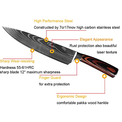 Specification: Kitchen Knife Set, Professional 8 Pcs Kitchen Chef Knife Set, Chef Knife Set with Sharp High Carbon Stainless Steel Forged Blade and Ergonomically Pakkawood Handle, Japanese Knife Set (8Pcs set)