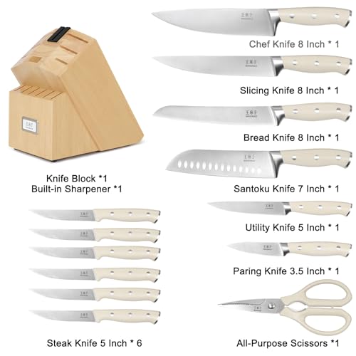 Specification: Premium Knife Set,High Carbon Stainless Steel Forged,Sharp Knives Set for Kitchen,Triple-rivet Ergonomic Handle,Hundreds Years of Masterful Craftmanship(Ivory,15PCS)
