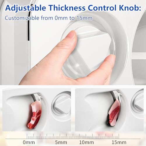 Adjustable Thickness Control (0-15mm): Customize your slices with ease using the 0-15mm adjustable thickness knob. Whether you prefer thin deli slices or thicker cuts for sandwiches or steaks, this slicer gives you full control over your slicing preferences