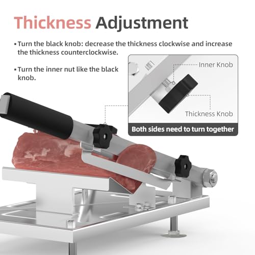 Upgrade blade——The blade length is extended to 200mm, which can cut wider and longer frozen meat slices The width is thickened to 3mm to withstand greater pressure. The blade is very sharp and requires great attention when using it.