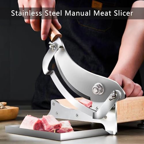 Stainless Steel Manual Meat Slicer – Heavy-Duty Kitchen Tool for Cheese, Jerky, Biltong, and Bread Cutting – Manual Beef and Ham Cutter with Stainless Cutting Board for Home & Deli