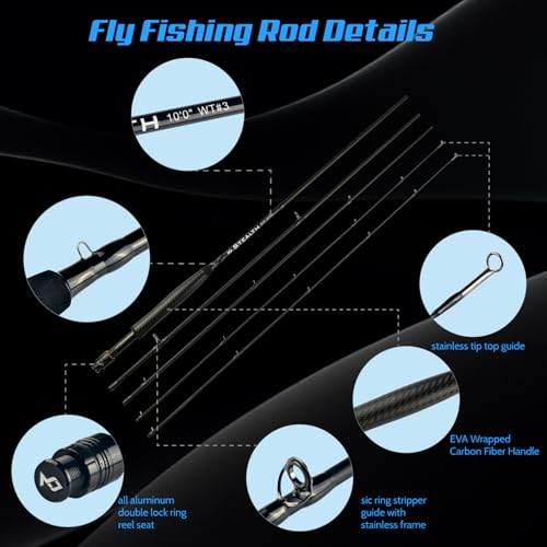 Specification: Stealth Fly Fishing Rod Combo Starter Kit, 30T Carbon Fiber Graphite Fly Rods with Die-cast Aluminum Reel and Fly Fishing Accessories