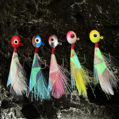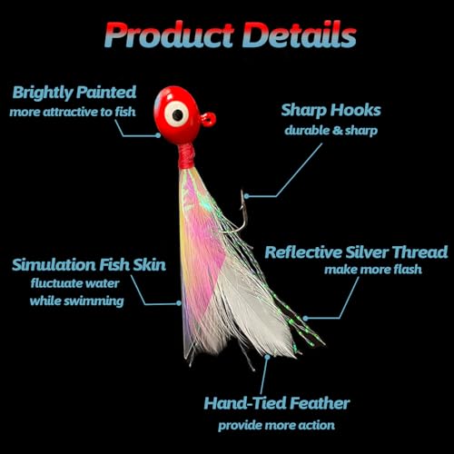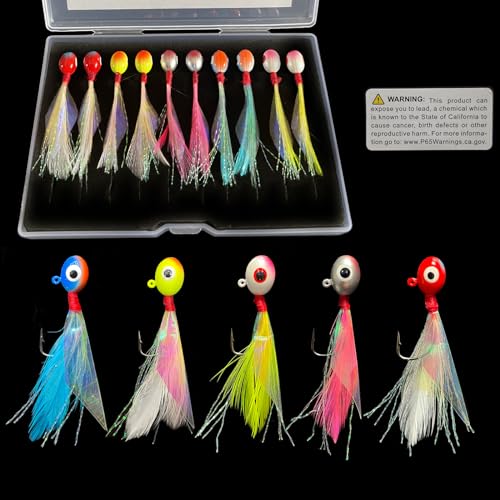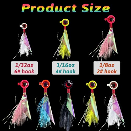 Specification: Crappie Jigs Oval Crappie Jig Heads with Hand-Tied Feather Rainbow Skin,10/20Pcs Crappie Fishing Lures Kit for Bass Crappie Trout Walleye Panfish Sunfish 1/32oz 1/16oz 1/8oz