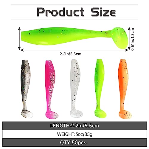 Specification: MAFIMOEA 50 Pcs Soft Fishing Lures Plastic Paddle Tail Swim Baits Kit for Bass Trout Walleye Crappie 5 Mixed Colors Fishing Soft Plastic Lure Kit 5.5CM