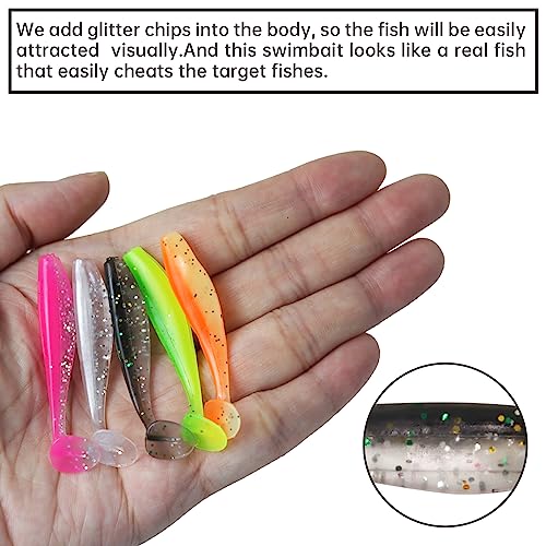 MAFIMOEA 50 Pcs Soft Fishing Lures Plastic Paddle Tail Swim Baits Kit for Bass Trout Walleye Crappie 5 Mixed Colors Fishing Soft Plastic Lure Kit 5.5CM