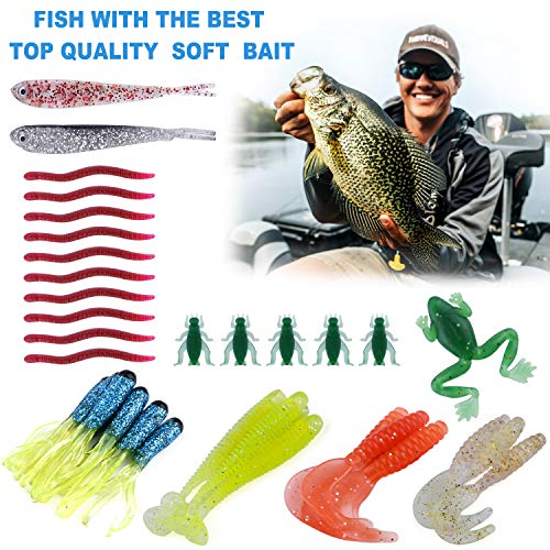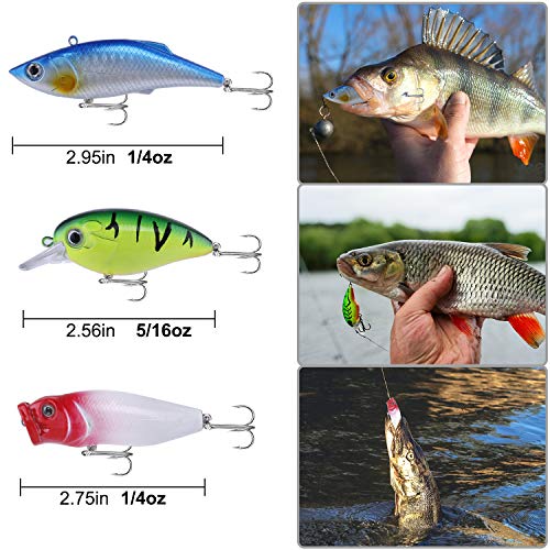 【Varities of Lures】This fishing gear contains 5 different baits:Crankbaits 4pcs, Metal Spinning Lures 3pcs, spinnerbaits 3pcs, Topwater Fishing Frog Lures 1pcs,4 different Plastic Worms 20pcs. A wide range of fishing accessories from common fishing baits to accessories that can be used in a variety of fishing occasions, can meet all your fishing needs.