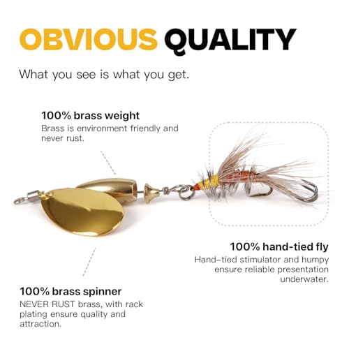 Specification: Trout Spinner Lures with Stimulator/Humpy Dry Fly Tail, 100% Hand-Tied 5/10 Pack Rooster Tail Fishing Spinnerbait for Bass, Pike, Salmon