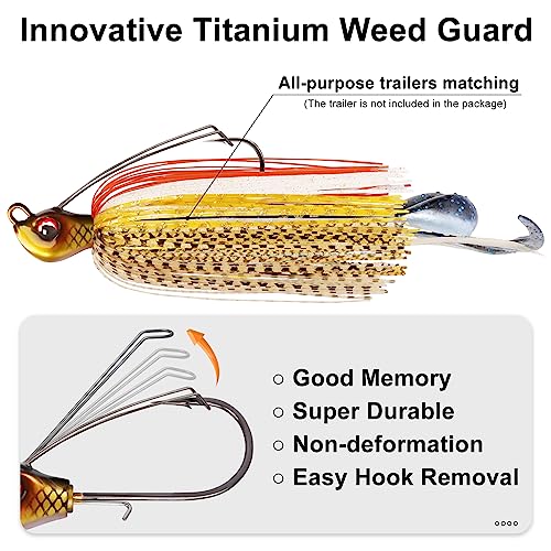 INNOVATIVE TITANIUM WEED GUARD – TRUSCEND swim jigs for bass fishing are equipped with a unique titanium wire as weed guard, which is not easy to break or deform, and long service life. The weedless jig fishing lures are the magic baits you win on the battlefield.