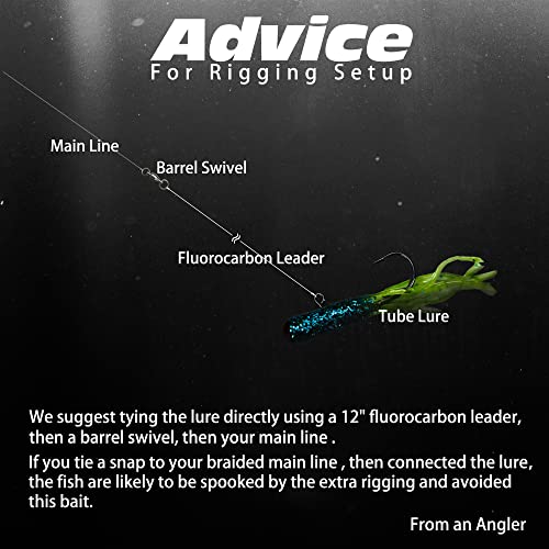 【High Resist to Fish Bite】Made of ultra durable soft material, this tube bait can withstand even the most aggressive fish, effectively extend the use time of your tube fishing lures. High quailty tube jighead delivers unrivaled sharpness, hook penetration, enough to catch more, prevent fish from fleeing. No matter if you’re fishing in freshwater or saltwater.