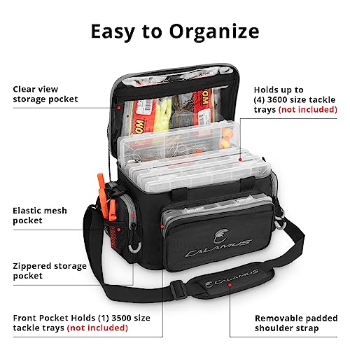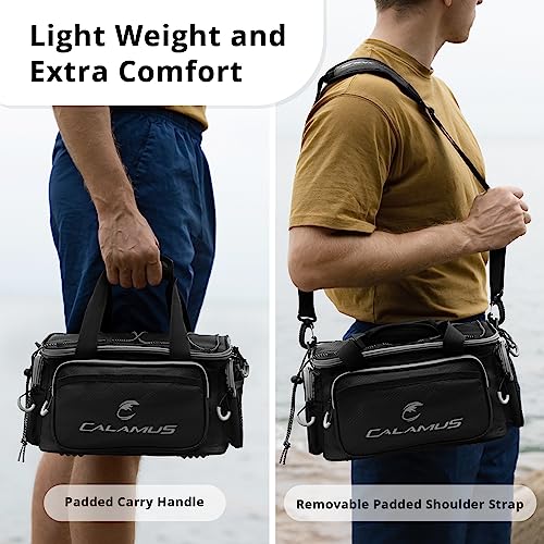 Comfort and Storage – Our padded shoulder strap and handle provide extra comfort for oversize loads. Calamus fishing tackle bags are comfortable to carry, easy to store, and offer best in class value! Load up your tackle box trays with soft baits, fishing lures, crank baits, jigs, hooks, weights, terminal tackle and rigs