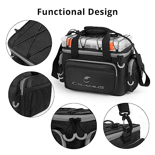 Calamus Fishing Tackle Bags – Saltwater & Freshwater Fishing Bags – Rip-Stop PE – Padded Shoulder Strap – Pliers Storage – Black