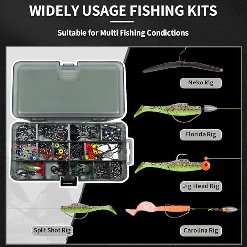 【Widely Usage】 Multiple fishing supplies can be formed into a variety of fishing gear, including Texas Rig, Carolina Rig, Jig Head Rig, Florida Rig, Neko Rig, Wacky Rig, 3-way Swivel Rig, etc. It can meet the needs for catching different species of fish in all waters layers, such as Bass, Trout, Walleye, Bluegill, Perch, Crappies, etc.