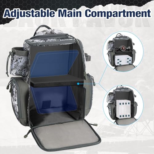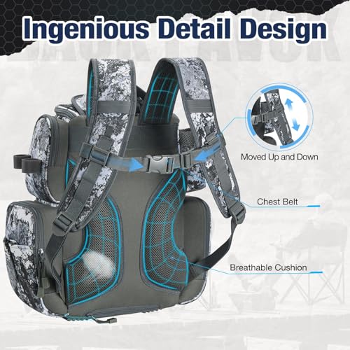 Piscifun Fishing Tackle Backpack with 4 Trays, Large Outdoor Storage Tackle Bag with Protective Rain Cover for Fishing Gear