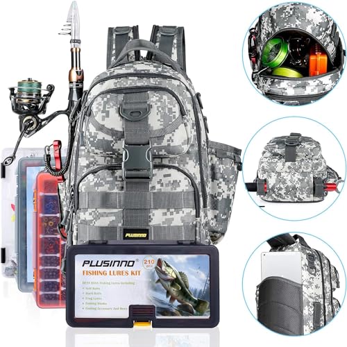 PLUSINNO Fishing Backpack with Rod Holder, Water-Resistant Tackle Bag – Ideal Gifts for Men