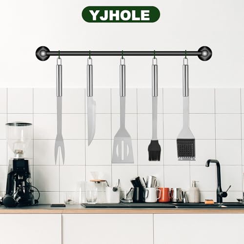 【Essential 7PCS Grill Set for Outdoor】 YJHOLE grilling accessories includes: grill tong, fork, spatula, basting brush, grill cleaning brush, sharp steak knife, high-quality storage bag and beautiful package box. Which is ideal gift choice for Fathers Day, Thanksgiving or Christmas.