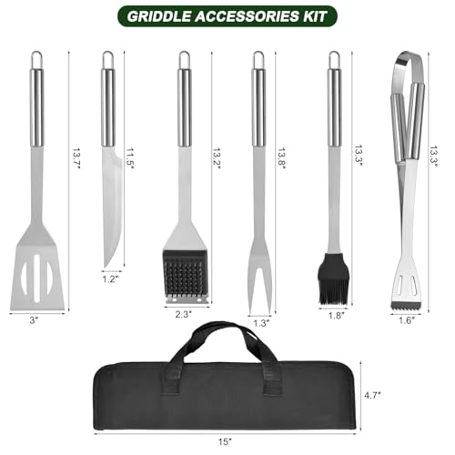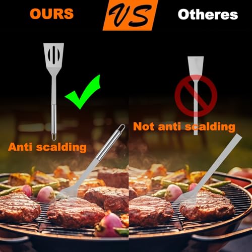 【Easy to Clean & Storage & Carry】 The grill utensils set is easy to clean, requiring just a rinse under water to restore its shine, is dishwasher safe, making it perfect for home use or as a thoughtful gift. After drying each tool, it can be neatly placed in a compact storage bag for better protection. Easy to carry and store.