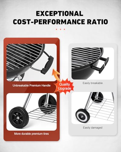 Portable Design – Equipped with newly upgraded durable wheels, it is easy to move around, making it the perfect place for grilling whether in the backyard, on the terrace, or in the park.