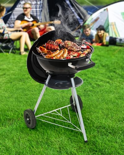 18 inch Charcoal Grill, Outdoor Barbecue Kettle Grill, 227 Square Inches Cooking Space, Highly Cost-Effective Portable Grill, Perfect for Outdoor BBQ Party, Camping and Small Patios, Black