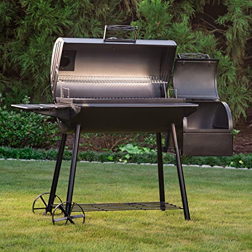 CHARCOAL GRILL & OFFSET SMOKER – Charcoal Grill & Smoker with Side Fire Box attachment perfect for low and slow Texas-style Smoked Barbecue