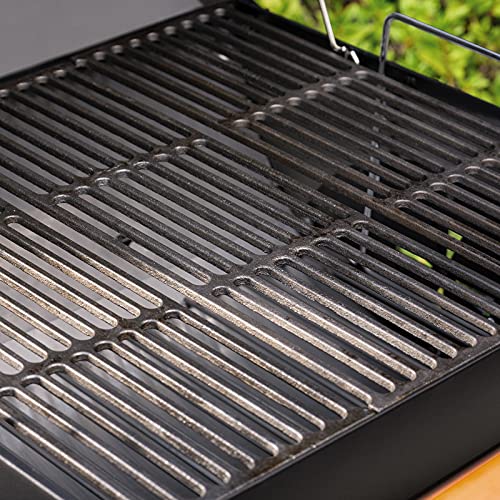 BARBECUE GRILL FEATURES – Thick cast iron cooking grates for maximum heat retention, Stay Cool wooden handle, and wheels for easy portability
