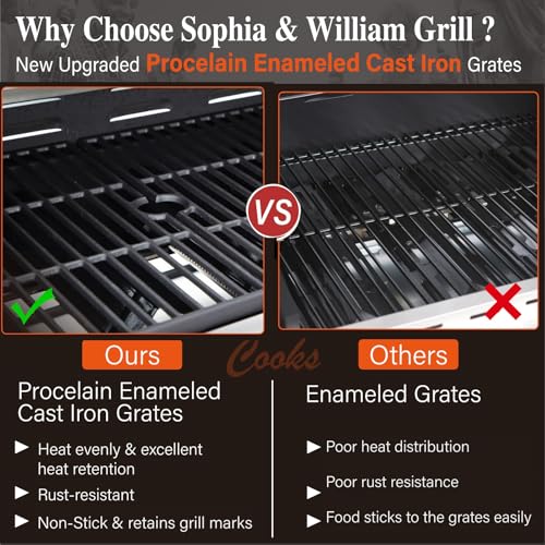 Specification: Sophia & William 6-Burner Propane Gas BBQ Grill with Side Burner & Porcelain-Enameled Cast Iron Grates, Stainless Steel Barbecue Grills Outdoor Cooking for Outside, 665 SQ.IN. Cooking Area, 65,800BTU