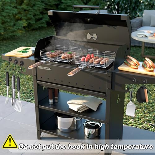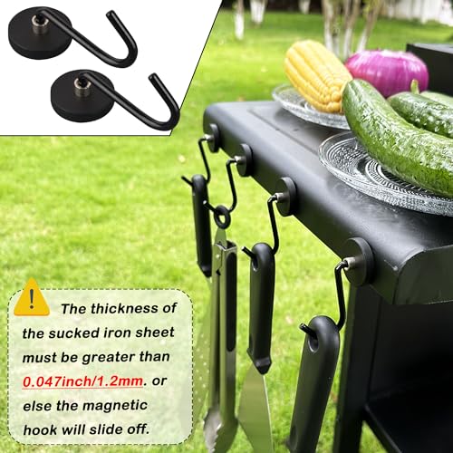 【Strong Magnetic Grill Hooks】Equipped with powerful neodymium magnet base, allowing the BBQ hooks easily attach to the side of the grill to hang and organize BBQ utensils. Remember to attach them to the side of the grill without direct heat exposure