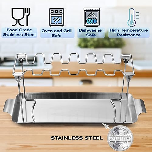 Chicken Leg Rack for Grill with Drip Tray – Easy to Use 12 Slots Chicken Wing Rack – Premium Stainless Steel Chicken Drumstick Rack for Smoker – Chicken Drumstick Holder for Grill Accessories